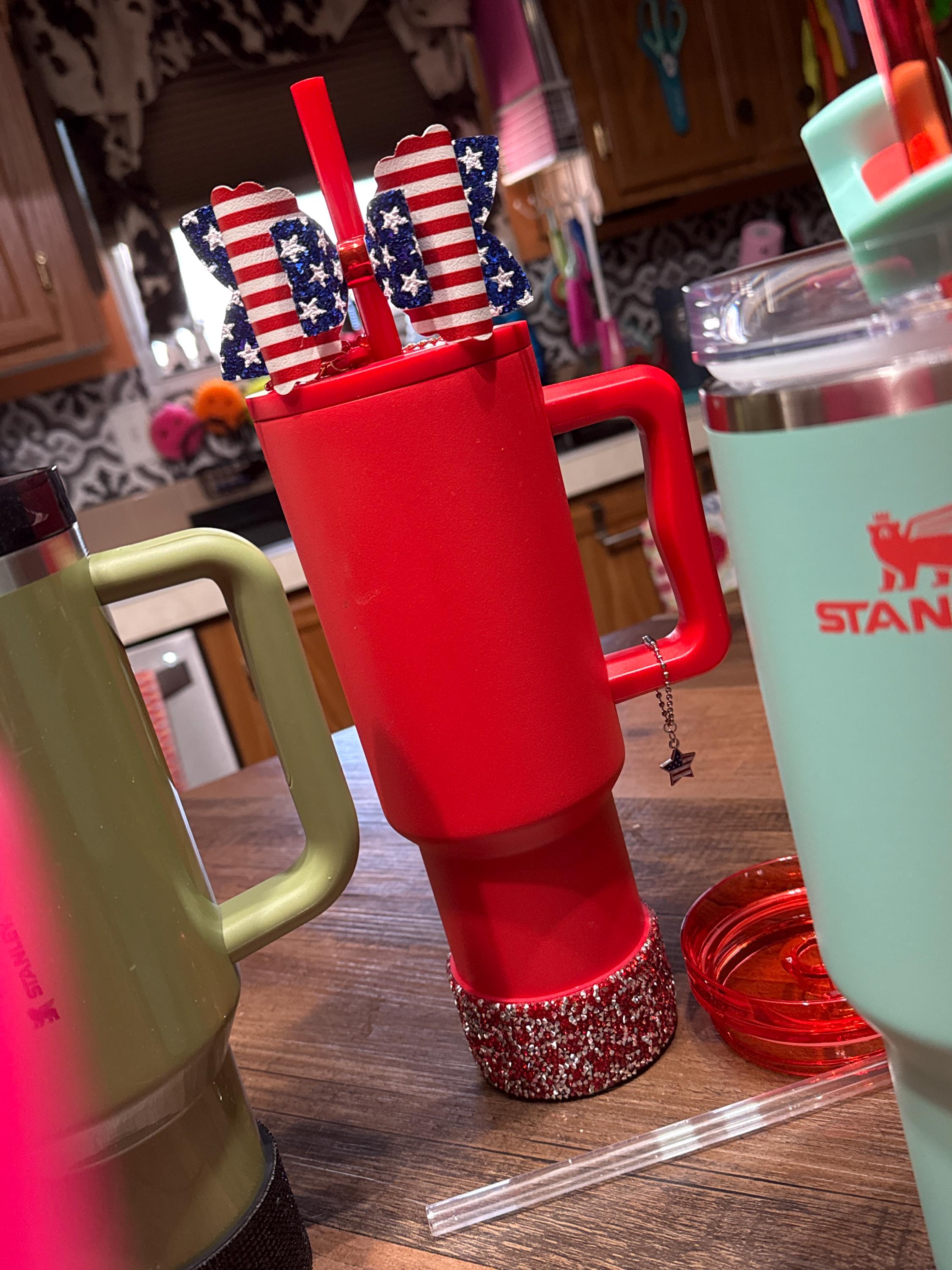 • 4th of July is just around the corner and this adorable bow straw topper matches well with any of your Starbucks or Stanley tumblers.