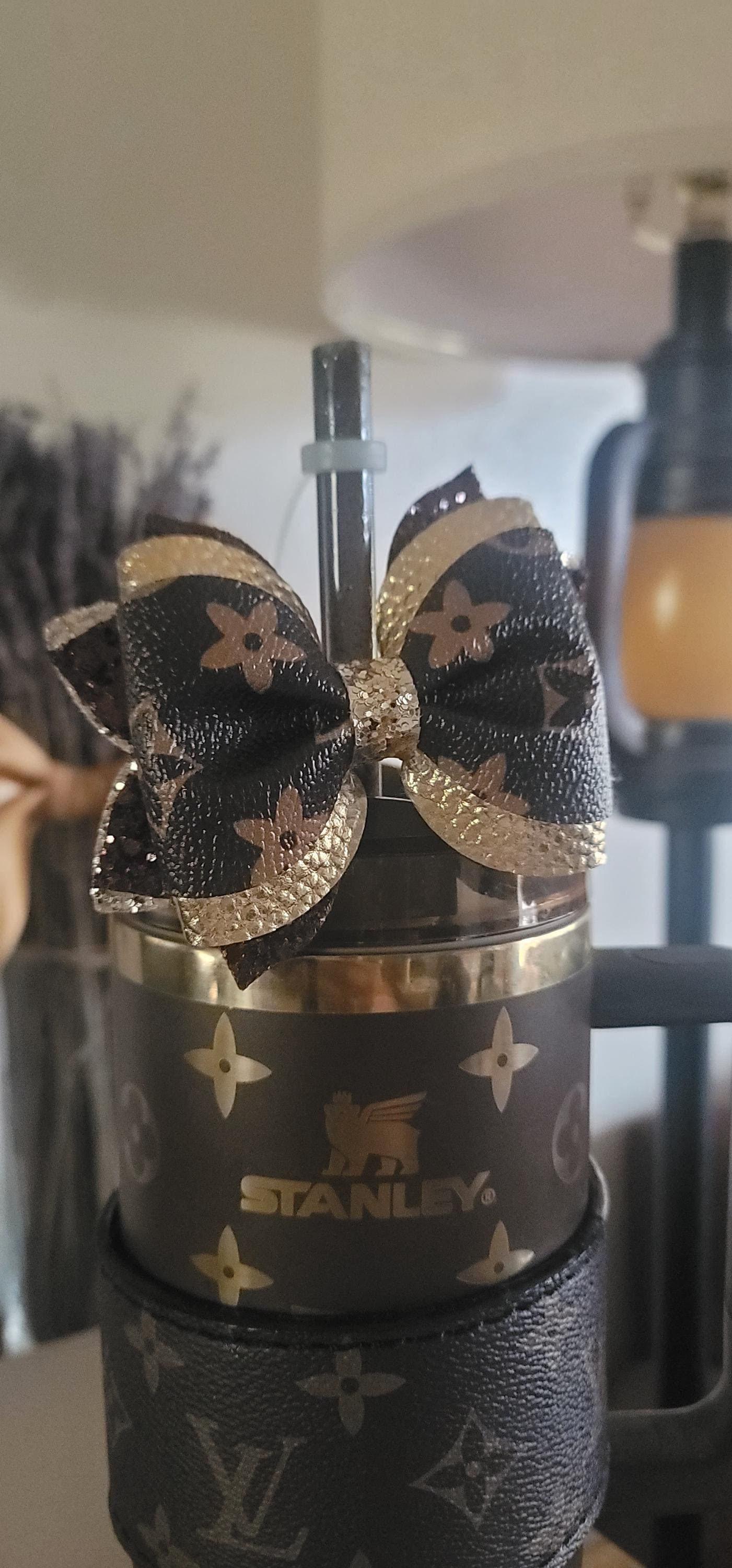 My daughter showed me a picture of a chocolate Stanley with authentic Louis Vuitton accessories. Her birthday is coming up and she said she wanted that. Yeah right, lol. I went to Etsy and I found this beautiful bow. The colors and patterns scream opulence! The bow is extremely well made and is a perfect size. I think my daughter will be happy with this amazing gift.